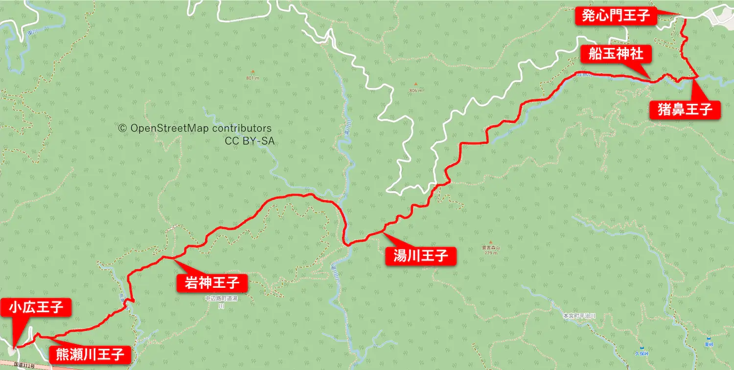 最新の小広王子から岩神王子を経る発心門王までのルートは、こちらです↓