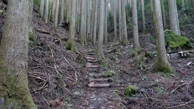 ここから先は熊野古道中辺路ルートの中でも滑りやすく、危険な場所だと思います。注意して進みましょう!!
