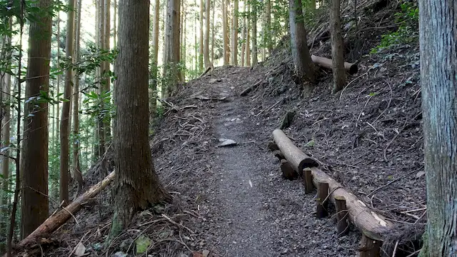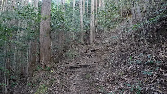 熊瀬川王子から岩神王子までの道は、坂道が多く、すぐそばを川が流れているため、全体的に湿りやすい区間です。