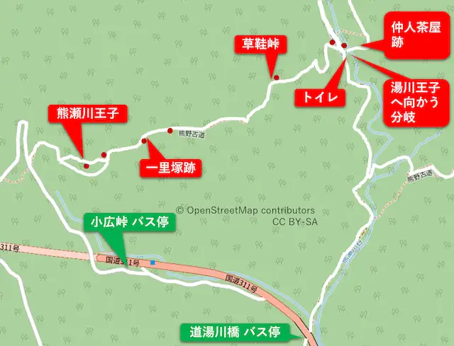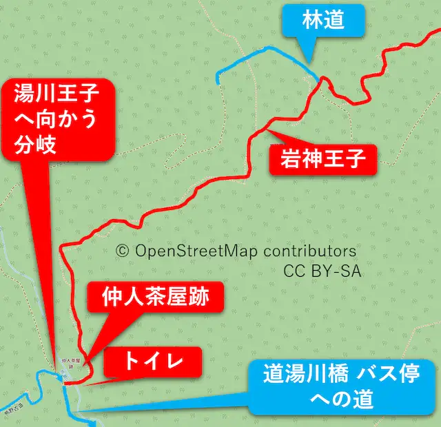 【熊瀬川王子から岩神王子までのルート図】